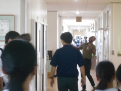 素敵な笑顔とともに「グッドモーニング!」元気な声が廊下に響きます。そして、一人ひとりとグータッチ!お互い自然と笑顔となり、体の中にパワーがみなぎってきます。