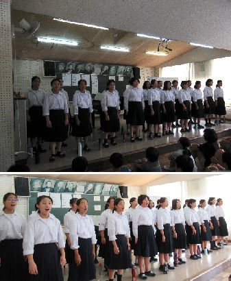 6年生を前に4曲披露し、最後に6年生と一緒に「翼をください」を合唱しました。