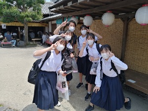 最後に、伊勢神宮とおかげ横丁をクラス別自由班で散策し、内宮をお参りしたり、最後の買い物をしたりしました。この後、伊勢を経ち帰路につきます。途中安濃SAでトイレ休憩後、出発時にHome&Schoolでベルビュー到着予定時刻をお知らせします。