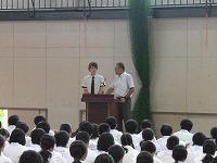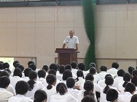 2学期の始業式では、校長先生から、「2学期は、体育祭や文化祭など行事も多く、季節も夏から秋・冬へと移り変わっていく1年間でもっとも長い学期です。仲間を大切にみんなで協力していってください」という話がありました。