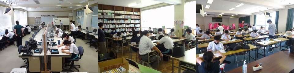 本日、午前中に各学年、夏季休業中の1回目の補充学習を行いました。数学と英語の基礎的な課題プリントや、夏休みの宿題等を自主学習しました。中学校区学びの一体化の取組の1つとして、生徒たちがお世話になった常磐・常磐西両小学校の先生方にもお手伝いいただいています。参加した生徒たちは、1教科50分の学習を集中して取り組んでいました。なお、残りの3回は、7月25日(月)、8月22日(月)、23日(火)に行います。家庭学習においても、夏季休業中は、苦手教科の克服や得意教科のさらなる向上に努めましょう。<左から1年生、2年生、3年生>