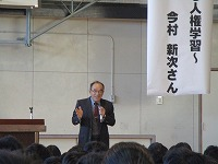 11/30土曜活動として、人権講演会と学年懇談会を行いました。人権講演会は元常磐中学校長の今村新次先生に来ていただき「素敵な出会い~親子で考える人権学習~」という講演をしていただきました。様々な体験から、差別に立ち向かうには仲間同士の強いつながりが大切であるとお話ししていただきました。