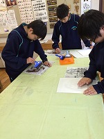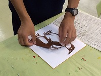 伊勢型紙もデザインの切り抜きが終わり、いよいよ糊付けの段階に入ってきました。