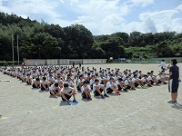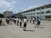 体操隊形の練習も行いました。体育委員長の大きな声に合わせ、一生懸命声を出して頑張りました。