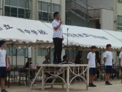 体育祭の開会にあたり、校長先生から「体育祭の取り組みを心の成長の場とし、一人ひとりの力を合わせて心に残る一日にしましょう」とお話しをいただきました。