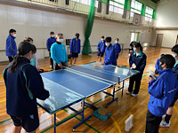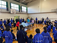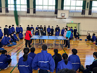 今日の2限目から4限目の時間に1年生は、講師の伊藤さん、黒田さん、稲毛さん、中野さん、社会福祉協議会から安田さん、中西さんに来ていただき、サウンドテーブルテニス「SSピンポン」と講演をしていただきました。