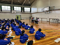 目が見えない中での、迫力あるプレーする姿に生徒たちは衝撃を受けていました。うまくいかないことも多くありましたが、どの生徒も楽しみながら体験していました。