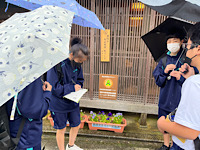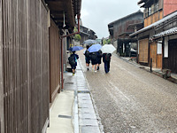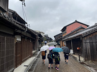 あいにくの天気ですが、関宿散策開始です。歴史的街並みを歩きながら、夜に使うカルタを探しながらの散策になります。