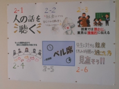 2年生室長会は、各学級で行った今学期の反省をもとに、各学級の重点目標をまとめました。各学級で作成した重点目標を1つにまとめ中央階段に掲示しました。