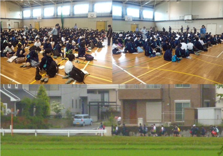 あいにくの雨ですが、生徒たちは元気よく出発しました。