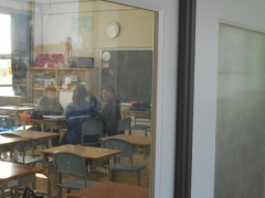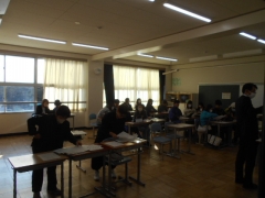 三者懇談会後、多目的教室で出願の事務手続きを行いました。