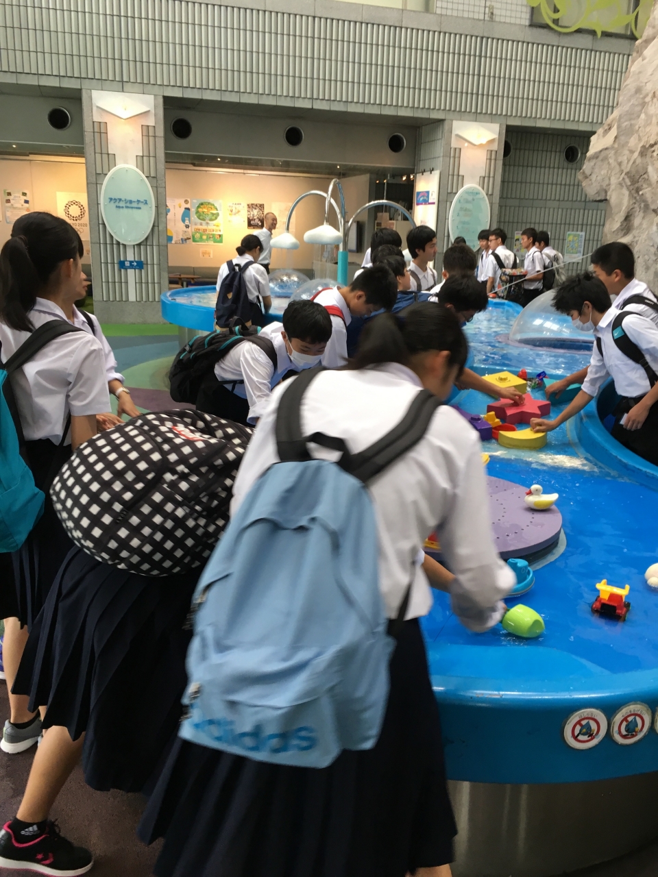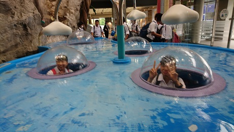 2号車3号車は、東京都水の科学館に来ています。 童心に帰り、水で遊んでます。