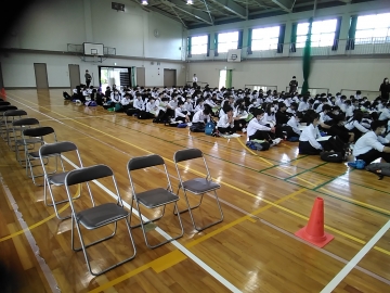 新幹線乗車練習、集合写真隊形等の確認が行われています。200人が動くには何事も事前練習が欠かせません。