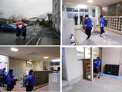 校舎の入り口では、アルコール消毒と検温をおこないました。オミクロン株が徐々に流行してきています。今一度、感染症対策をしっかりおこないましょう。