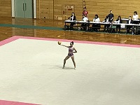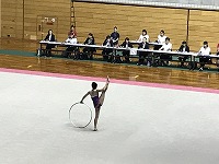 7月16日⁽日⁾伊賀市の「ゆめドームうえの」で中体連の新体操競技の県大会が行われました。フープとボールで精いっぱいの演技をしました。