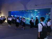 1・5・6組、鳥羽水族館に到着しました。月曜日の開館直後とあって、空いていますが、マナーは、しっかり守って班別学習します。