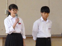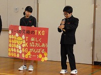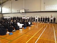 2年生が学年集会を行いました。各学級の室長をはじめとしたリーダーが前に並び、みんなで拍手をおくりました。その後、各学級の目標を発表しました。どの学級も担任の先生の思いも入った個性的な学級目標が出来上がりました。今後は意識して様々な活動をしていってほしいものです。