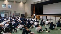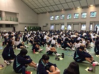 洗顔、歯磨きを終えた生徒たちは、朝の集いを行っています。