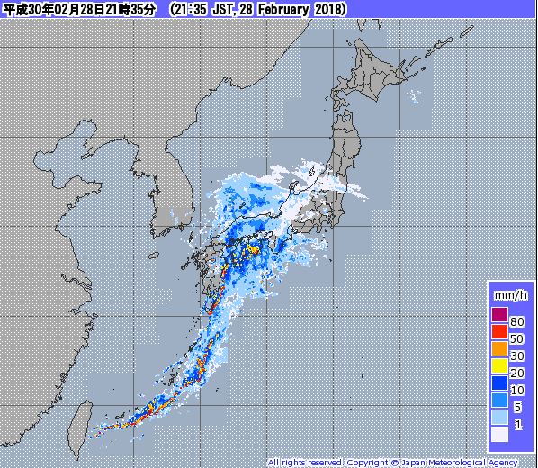 3月1日にかけて予想される最大風速は、20メートル(瞬間最大30メートル)です。暴風に十分警戒してください。
