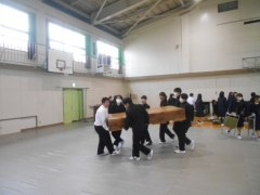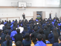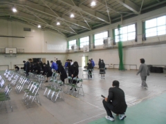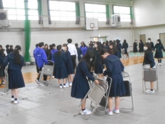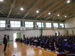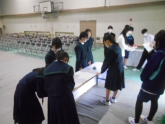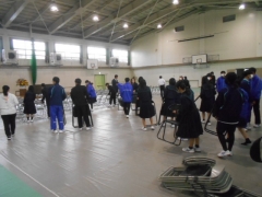 入学式の式場設営は、最上級生となった3年生が行います。準備にかかる前に学年集会を行いました。