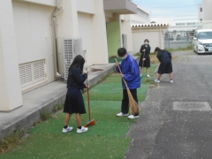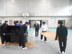 式場設営、体育館周りやトイレの掃除など新入生を迎える準備を行いました。