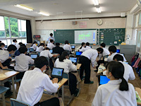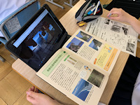 熊野古道のルートや注目スポットをパンフレット、タブレットを使いながら調べました。「この景色綺麗だ」「早く行きたくなった」という声が聞こえてきました。自分たちが歩くイメージはわきましたか?