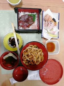 岩戸屋さんで、行程最後の食事に、名物の手こね寿司と伊勢うどんをいただきました。