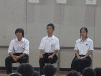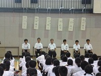 本日6限目、後期生徒会立会演説会及び生徒会役員選挙が行われました。今回の選挙には、会長(定数1)に3人、副会長(定数2)に6人、執行委員2年(定数3)に10人、執行委員1年(定数3)に6人とたくさんの人が立候補をしてくれました。立会演説会の内容も立派で、皆さんの意識の高さには驚かされました。まれにみる激戦の中、後期の生徒会を担うのは次の人です。