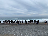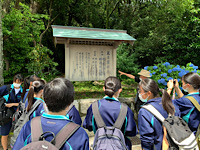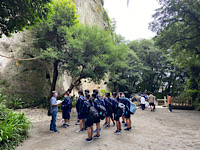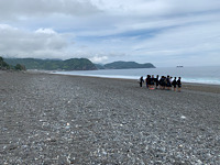 先日からの雨で熊野古道松本峠コースが歩けなくなりましたが、七里御浜と花の窟神社を語り部さんとともに歩くことができました。波打ち際まで近づくことができました。花の窟神社は大きくて圧倒されましたね。