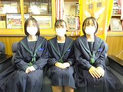 27日(水)午前9時前に、若い女性から学校に電話がありました。内容は、前日の午後6時半ごろ軽自動車で西から東日野橋に向かっていて、道幅が狭くなったクランクのところで脱輪して立ち往生していたところ、自転車で塾に向かう途中、通りかかった本校女子生徒3名が、「何かできることありませんか?」と声をかけてくれ、近所の方に車を上げてもらうまで、その道に侵入してくる車の制止や誘導をしてくれたということでした。その行為に大変感激され、お礼の気持ちを伝えてほしいこと、また塾に遅れなかったか心配であったということでした。本日、お昼休みにその3名の2年生女子生徒、佐藤未悠さん、藤田真白さん、松井萌恵さんに校長室に来てもらい話を聞いたところ、3名は、何かできることはないかと声をかけ、自分たちに手伝えることをし、塾の時間にも間に合ったということでした。その女性から電話をいただいたこととそのお気持ちを伝えるとともに、その素晴らしい行為そのものとその行為が常中生徒全体の印象をよいものにしてくれたことに校長として感謝の意を伝えました。
