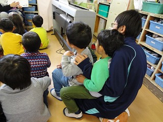 外遊びが出来ず、どのクラスも絵本の読み聞かせは大人気!