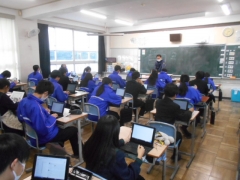 教育相談を実施しながら、各自がタブレットPCを使って、2学期の反省、学校アンケート、人権意識アンケート、生活アンケート等々、学校や市、県の調査・アンケート等に回答しました。