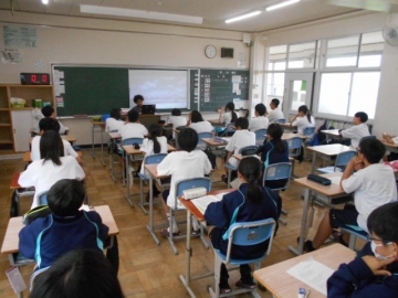 この時間は候補曲を聴いた後、学級で相談し第5候補まで決めました。