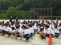本日より体育祭の練習が始まりました。前日までの雨で、グラウンドコンディションは良くありませんでしたが、何とか雨にも降られず、全学年とも練習することができました。今週はどの学年も毎日の練習が予定されています。暑い中、グランドで2~3時間過ごすことになります。水筒とタオルを持たせてください。早寝・早起きを心がけ自分の体調管理をしっかりしましょう。