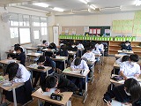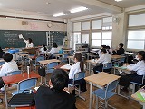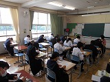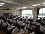 落ち着いた雰囲気の中、道徳の授業が行われています。「駐車場係として」に登場する主人公の行動を通して、自分の役割を忠実に果たすことの大切さについて学ぶことができました。
