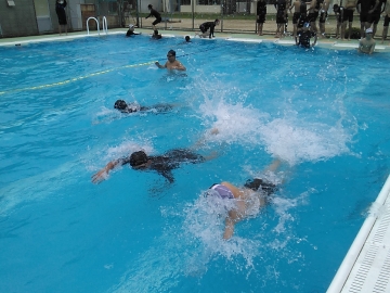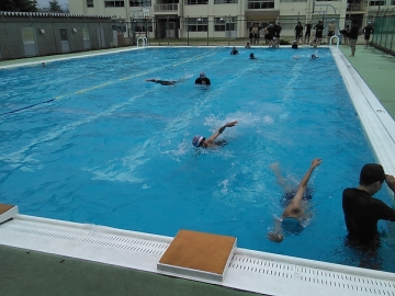 昨日から水泳授業がはじまりました。今日は薄曇り。暑くもなく寒くもなく、上々のコンディションです。