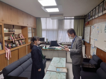 今日は、津法務局の方が来校して校長室にて表彰式を行いました。