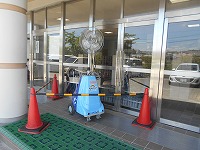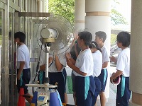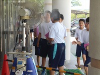 本日より熱中症対策として、四日市市教育委員会から配備された、ミスト扇風機を設置しました。