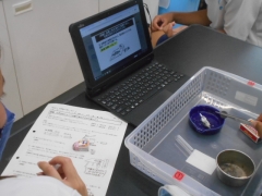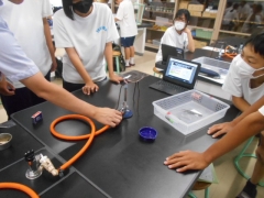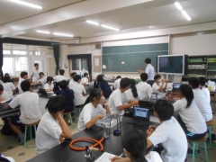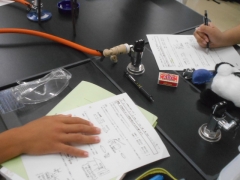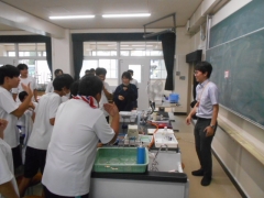 この時間は、カードゲームで化学式を学んだ後の実験の授業です。