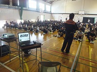 1限目は体育館にて、防災についての全体講話をしていただきました。