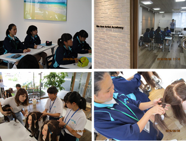 ミエヘアアーティストアカデミーです。講義を昨日受けました。写真は今日の髪の編み込みを人形を使い練習している様子です。BGMがかかる中ノリノリで実習です。