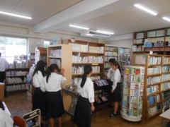 「〇〇の秋」といえば、スポーツの秋、食欲の秋、そして、読書の秋ですね。昼休みになると、多くの生徒が図書館にやってきます。