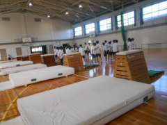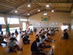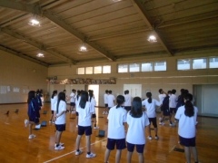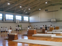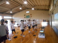 2年生保健体育科の授業の様子です。この時間は5組が体育館で跳び箱、6組が武道場でダンスを学んでいました。