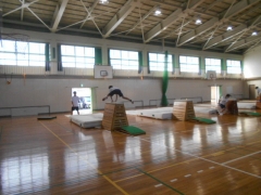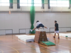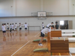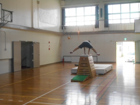 まず跳び箱の授業では、自分がチャレンジする高さを選択し、開脚跳びを中心に練習を行なっていました。