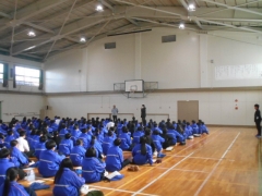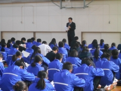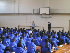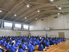 2年生は始業式後、教室から体育館に移動し学年集会を行いました。