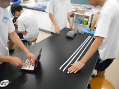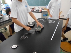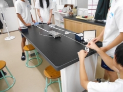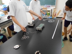理科室には協力する声やテープを見比べた感想、力学台車が走る音などが雰囲気よく聞こえました。そして、記録テープに記録したら記録を処理しました。