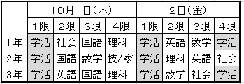 10月1日(木)2日(金)に2学期中間テストがあります。昨日9月24日にテスト発表を行いました。各学年のテスト範囲は以下の通りです。
