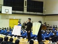 3月2日(水)5・6限目に3年生を送る会を行いました。現在、本校ではインフルエンザが猛威を振るっており、感染拡大防止のため、全員マスク着用での開催となりました。