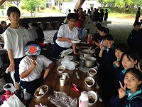 ご飯が少し焦げてしまった班もありましたが、カレースープになってしまった班は一つもなく、とてもおいしく出来上がりました。