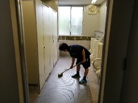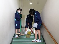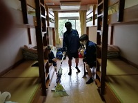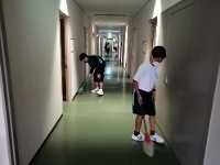 朝食と並行して、お世話になった宿泊棟の掃除をしました。「来たときよりきれいに」です。